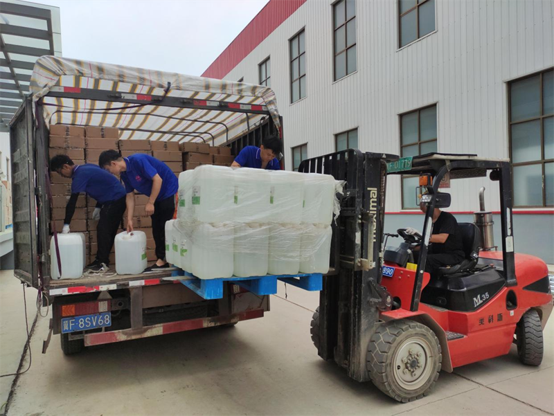 7月23日,經河北百消丹在總經理張士謙簽批,生產、質檢、倉儲等多部門協(xié)調動員,生產灌裝了千里馳援河南的**批環(huán)境消殺、抑菌的物資,1KG愛芙盾牌84消毒液5300余瓶,5Kg 84消毒液100余桶、25L 75%乙醇消毒液100余桶。第二批防疫物資正在積極籌備。7月24日,車輛從安國出發(fā),將物資送往河南鄭州,通過河南省慈善總會捐獻給所需災區(qū),為幫助河南受災同胞度過難關貢獻一份力量。
