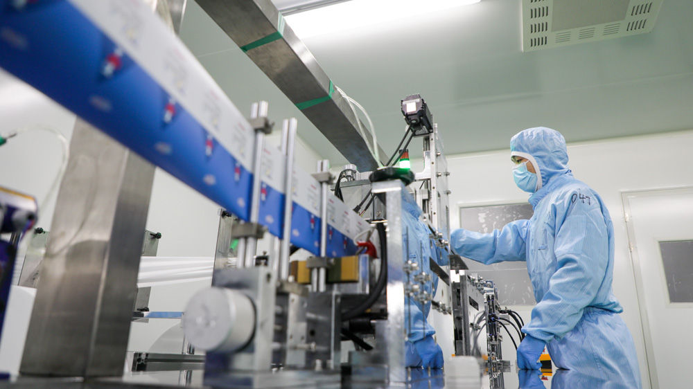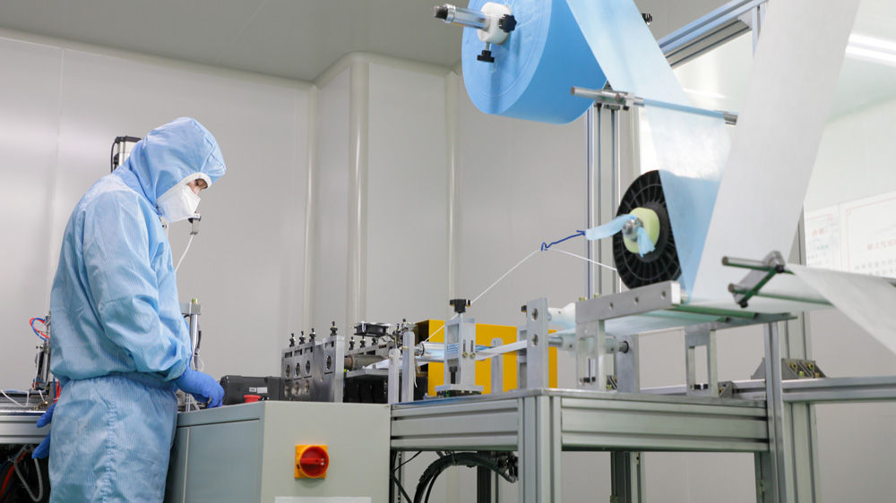 ↑河北安國現(xiàn)代中藥工業(yè)園區(qū)內(nèi)生產(chǎn)企業(yè)加緊生產(chǎn)保障口罩。于子涵 攝